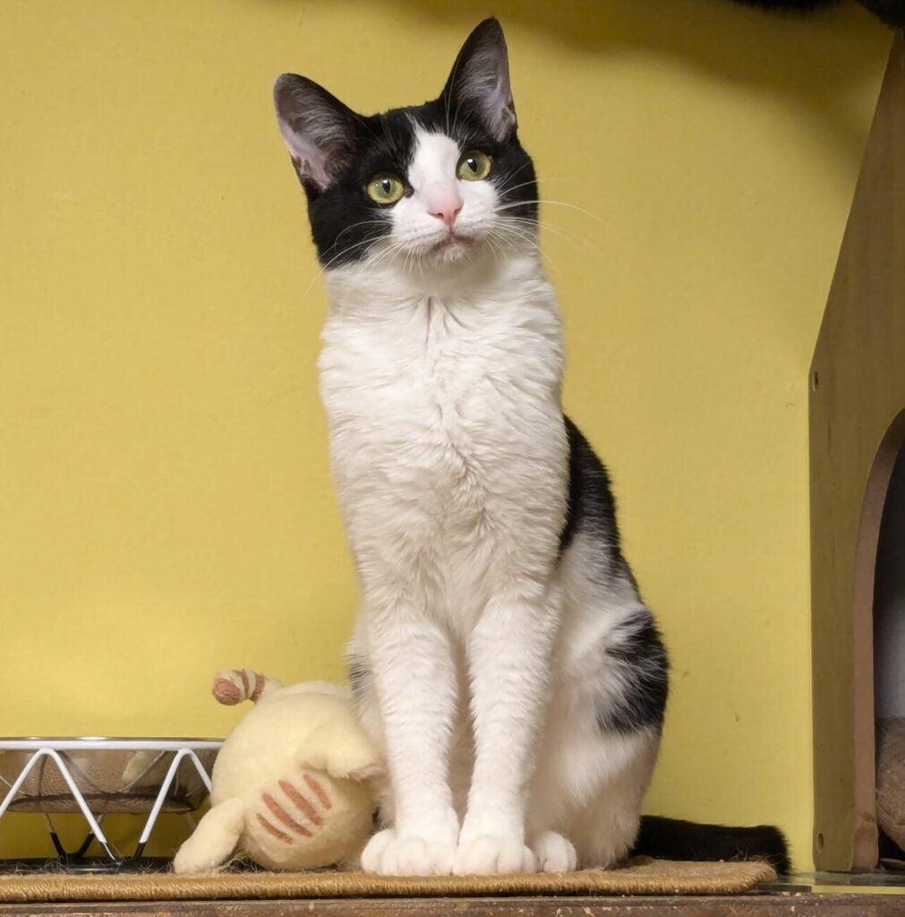お問い合わせフォーム一時停止2025-08-15 HPからメール下さったかた!すみません謝って削除しちゃってました2025-07-22 Suama’s Cats すあま商會の猫たち トライアル中 くろちゃん 2020年4月生まれ男の子 キジ白なのになぜかくろちゃんという名前(お外時代にお世話してくださっていた方の命名)。かなりの欲張りバディ。お外時代から片目がなく、足も骨折した状態だった。ずっと痛みを我慢してきたけれど、とっても性格が良くて人間大好き。 […] 里親募集中 外郎(ういろう) 2017年4月生まれ男の子 牛柄、じと目がむしろチャーミングな大柄な男の子。7年間お外で頑張ってきました。お外ではちょっといじめられっ子だったせいか、あまりほかの猫が好きじゃないかも。人のことは大好きで、すりすり、なでなで要求激しめ。 里親募集中 安積(あさか) 2025年5月生まれ男の子 お鼻の両脇に小さい黒い模様があるのが特徴的なハチワレの男の子。不破ちゃんの兄妹。かなりのビビりで、打ち解けるのに時間がかかるけど、本当は遊びたくていつもうずうずしている。 里親募集中 不破(ふわ)ちゃん 2025年5月生まれ女の子 お目目くりくりのかわいいキジ白の女の子。事故でしっぽが切れてしまって、もともと短めしっぽだったのを断尾した結果ぼんぼりしっぽに。お転婆で食いしん坊。兄妹の安積くんより大きい。 里親募集中 みみちゃん 2025年5月生まれ男の子 ぼんぼりしっぽのハチワレの男の子。きいちゃんの兄弟。ネーミングライツで名前をもらいました。ビビりだけどかなり腕白で、激しく遊びます。きいちゃんもたじたじ。 里親募集中 きいちゃん 2025年5月生まれ男の子 ぼんぼりしっぽ、綺麗な顔立ちの茶白の男の子。みみちゃんの兄弟。ネーミングライツで名前をもらいました。食いしん坊でちょっとシャイ。 里親募集中 うみちゃん 2025年4月生まれ女の子 薄い三毛の女の子(預かりさん命名)。くっしー(のりしお)、きっしー、こみちゃんの兄妹。お転婆さんで姉妹のこみちゃんにタックルを仕掛けるがだいたい負ける。 里親募集中 こみちゃん 2025年4月生まれ女の子 濃い三毛の女の子(預かりさん命名)。くっしー(のりしお)、きっしー、うみちゃんの兄妹。かなりのお転婆さん。そしてけっこう強い。やられても絶対やり返す。 トライアル中 大江(おおえ) 2024年9月生まれ女の子 シャープなハチワレ、黒多めの女の子。泉の姉妹。天智天皇の娘の名前をもらいました。ちょっとシャイだけど、姉妹の泉を見ていて、甘えることを覚え始めました。運動神経抜群。 トライアル中 泉(泉) 2024年9月生まれ女の子 綺麗なハチワレの美少女です。大江の姉妹。天智天皇の娘の名前をもらいました。こう見えて、かなりの食いしん坊。運動神経抜群でジャンプの高さはすごい! トライアル中 忍海(おしぬみ) 2022年9月生まれ女の子 これまでに何度か子供を産んでいるらしいお母さん猫。保護された時にも妊婦さんで、動物病院で藍を出産。血のつながりはないけど他の子どもも一緒に育ててくれた優しい(けど人間にはやや厳しい)お母さんです。 里親募集中 翼(つばさ) 2023年5月生まれ男の子 とあるおうちのベランダにいつも遊びに来ていた地域猫の兄弟のうちのひとり(もうひとりは翔)。一度はTNRされたけれど、猫嫌いが多いエリアで心配ということで保護。大柄ですが、シャイ。遊ぶのは大好き。ちょっとずつ人慣れ修業中で […] トライアル中 蘇提売(そてめ) 2023年4月生まれ女の子 信紗、真妹の白黒お母さん。自身もまだとても若いうちに、ふたりを産んで、車のボンネットやら縁の下やらで大事に育てていました。人慣れ修業中だけど、そのうち慣れてくれると思います。 里親募集中 源太 2023年10月生まれ男の子 黒猫クーちゃんの兄妹?かもしれないきじとらの男の子。とってもビビリ。大きくてくりくりなお目目がかわいいですひとりでこっそり遊ぶのが好き。 里親募集中 クロちゃん 2018年5月生まれ女の子 すあま商會二代目ボスのお兄ちゃん、卒業生の内巧・耳面・斗売のお母さん。2年前に一旦TNRしたものの、交通量の多い道路を頻繁に渡るようになり危険なため、改めて保護。ただいま絶賛人慣れ修業中。お耳が小さくてねこまんじゅうみた […] 里親募集中 もずく 2023年4月生まれ男の子 ちょっと大柄なキジ白の男の子。好奇心旺盛でわんぱく、ハチャメチャに遊びます。そして食いしん坊。どこに行ってもすぐに馴染める子です。 里親募集中 留女(るめ) 2011年4月生まれ?女の子 お外で長年頑張ってきました。長毛茶トラの女の子です。まだ人慣れ修業中ですが、見ているだけで癒されるなんだかかわいいキャラです。 里親募集中 修理(しゅり) 2010年?生まれシニア男の子 TNRをしていた地域出身。左右の目が白濁しており、右目がうすぼんやり見えている程度で危険だったためリリースせず保護しました。10歳以上のシニアですが、子どもみたいに遊びます。おっとりさん時々おこりんぼう。 About 私たちのこと Cats 猫たちのこと Cafe カフェスペース How
