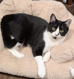 とある公園で保護されたぼんぼりしっぽの黒白の男の子。とってもわんぱくで、食いしん坊で、大きな音がする!と思うとだいたいケムルが何かしています。実母じゃないけど忍海のおっぱいにお世話になっています。